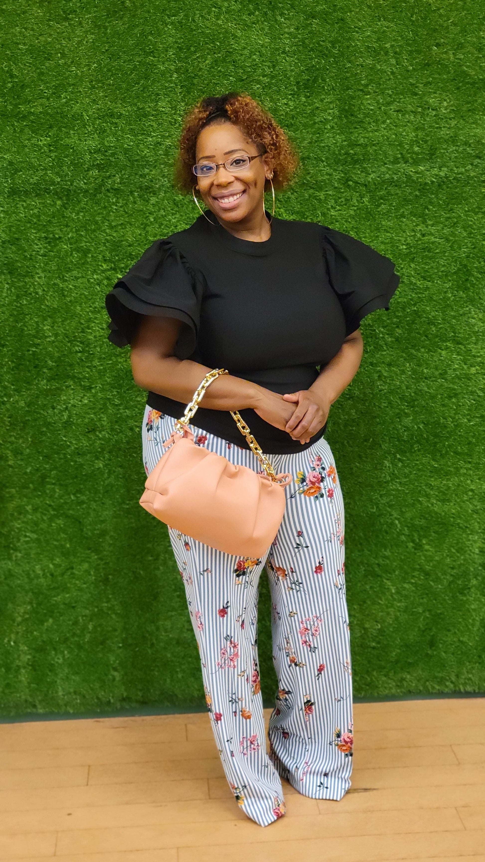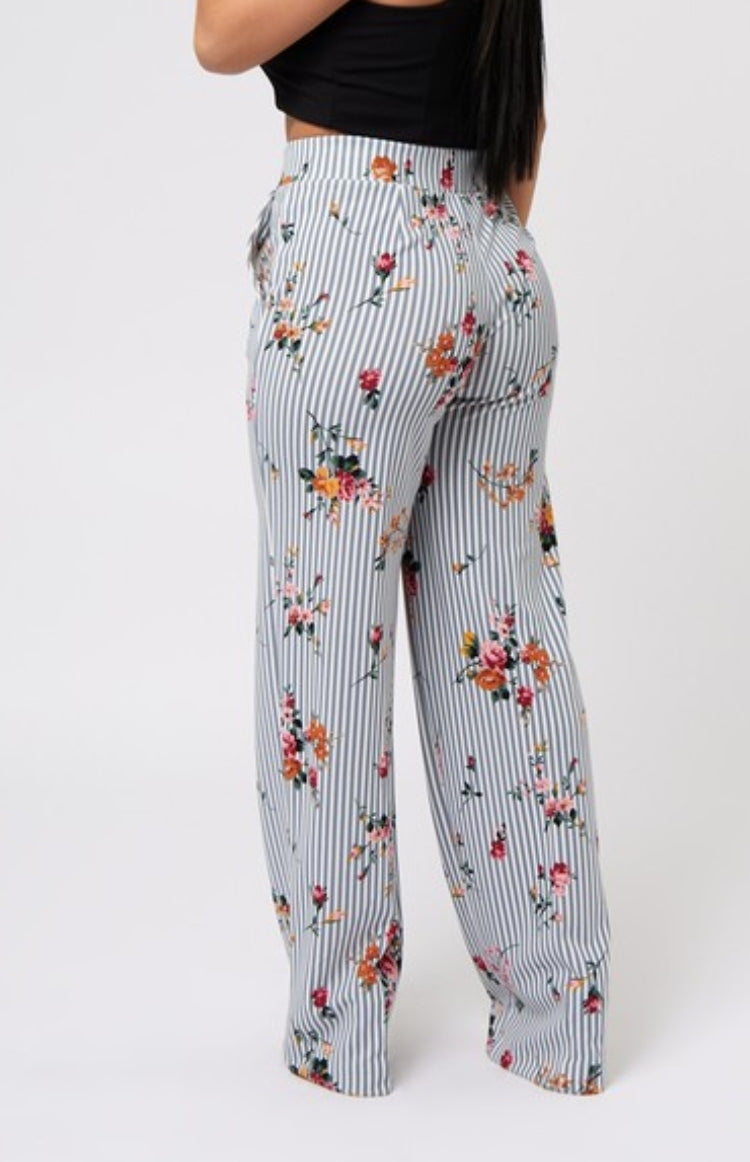 These beautiful pull-on wide leg pants feature a graceful English garden and striking floral and stripe pattern. Their stylish design is sure to make a statement!