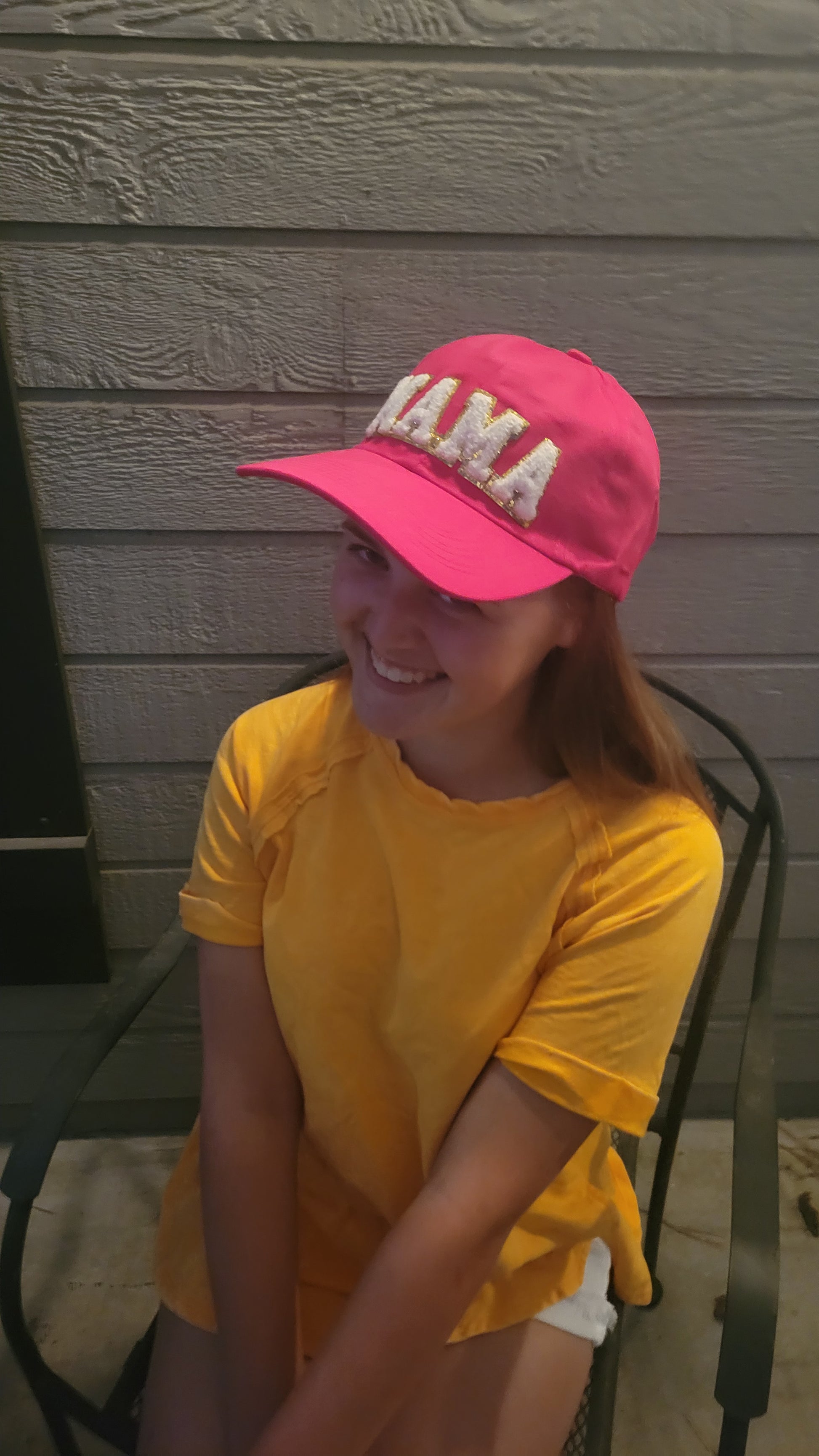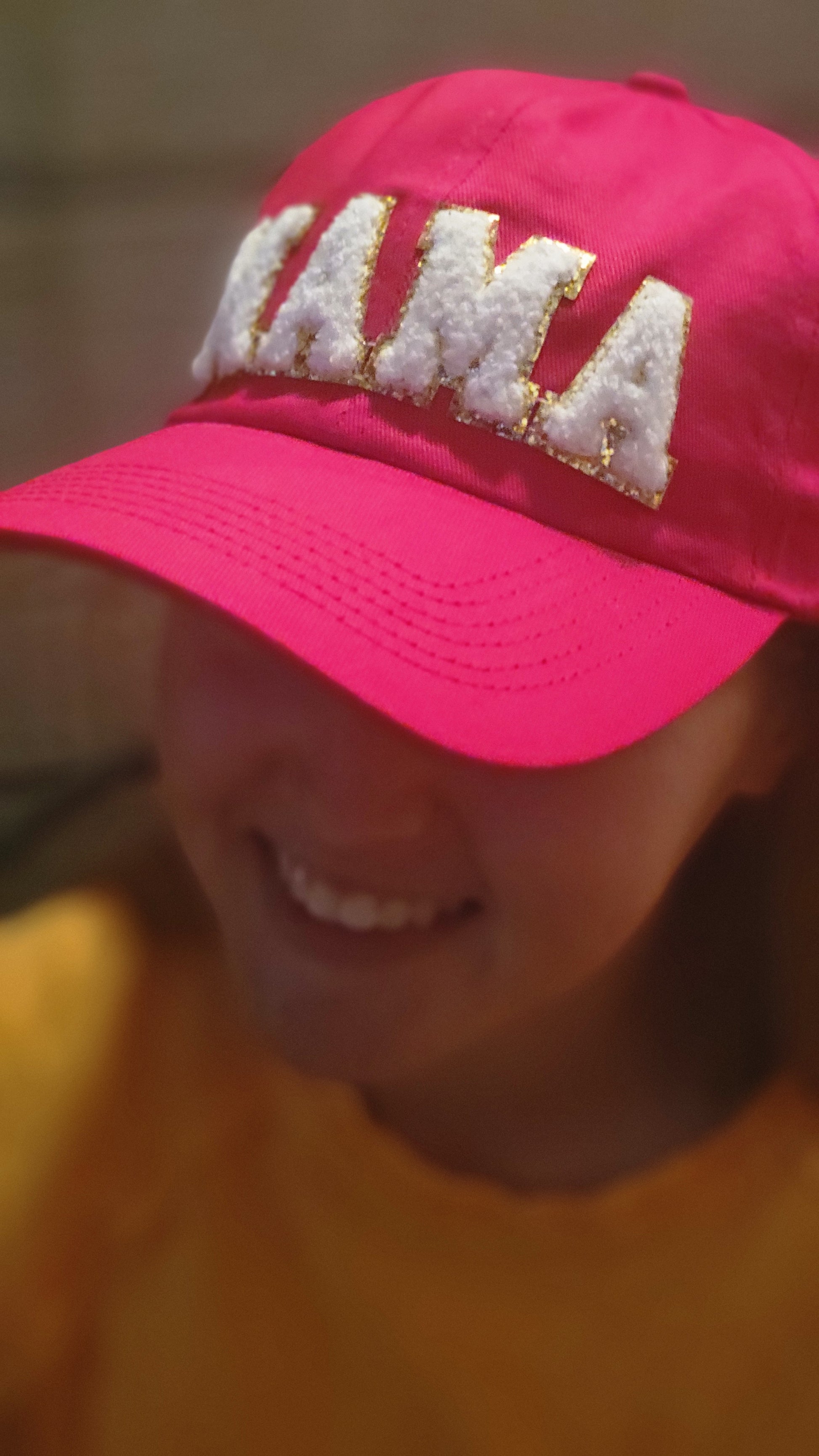 The cotton cap of Capped Boujee Mama boasts a chic design, featuring a chenille patch, and can be easily adjusted with its metal buckle closure.