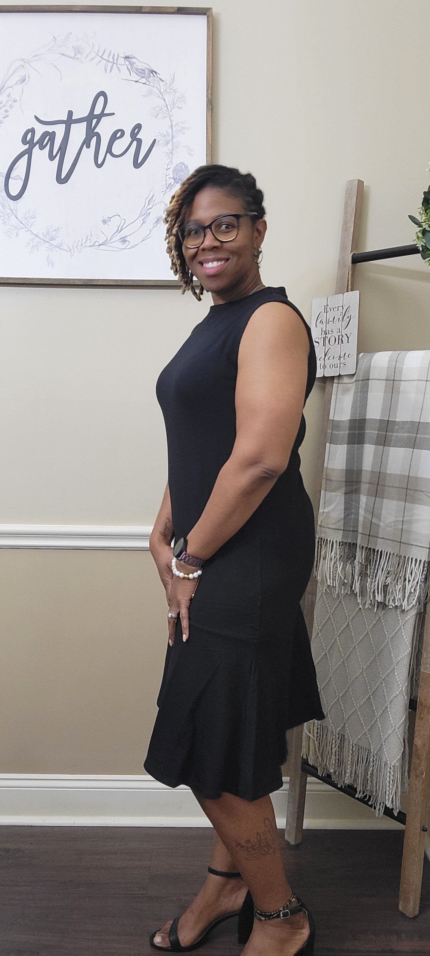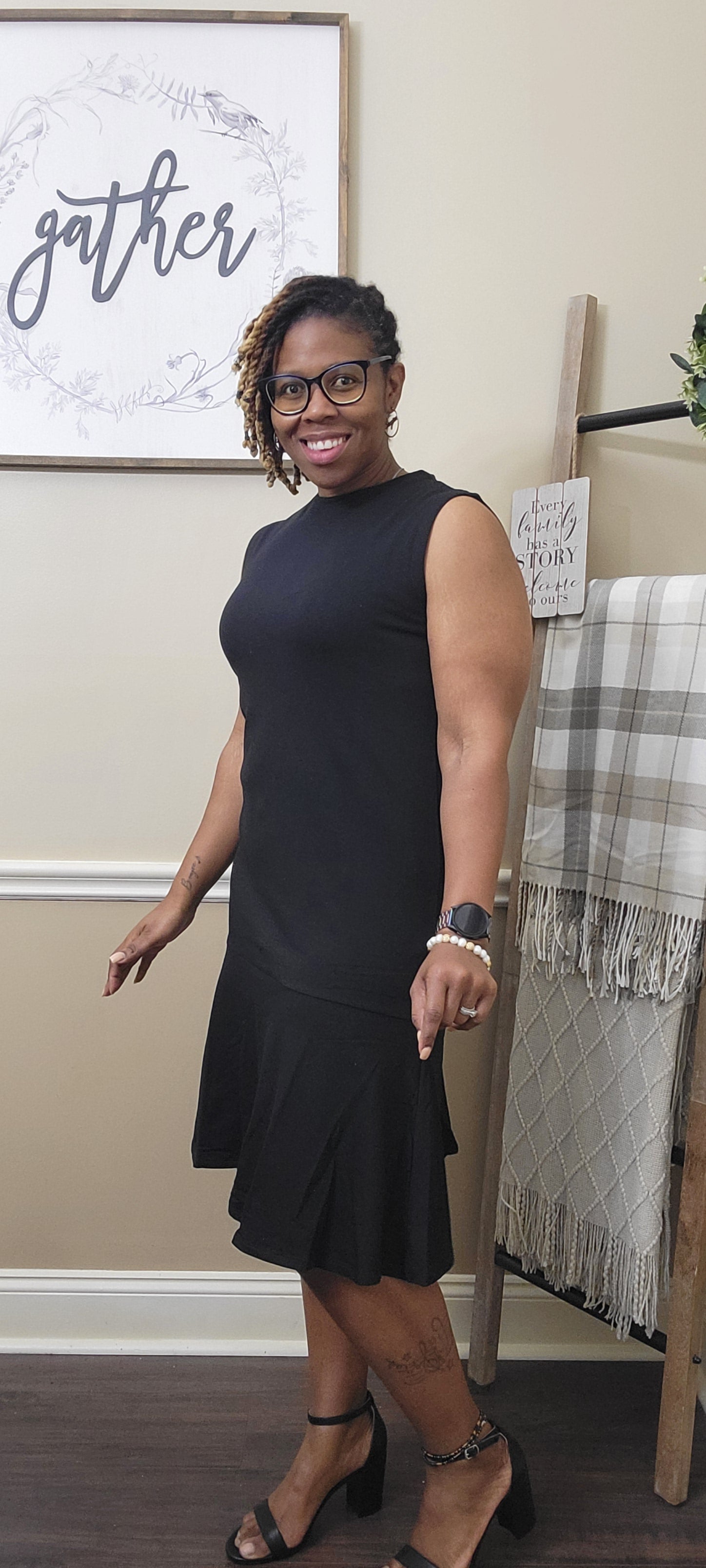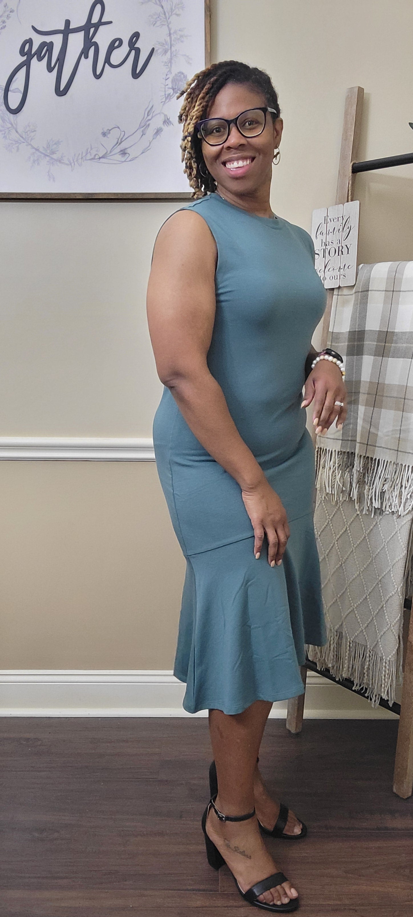 This midi length sleeveless dress features an A-line silhouette with a drop waist and loose fit, made of a blend of 50% polyester, 45% cotton, and 5% spandex. Crafted in China with precision and quality.