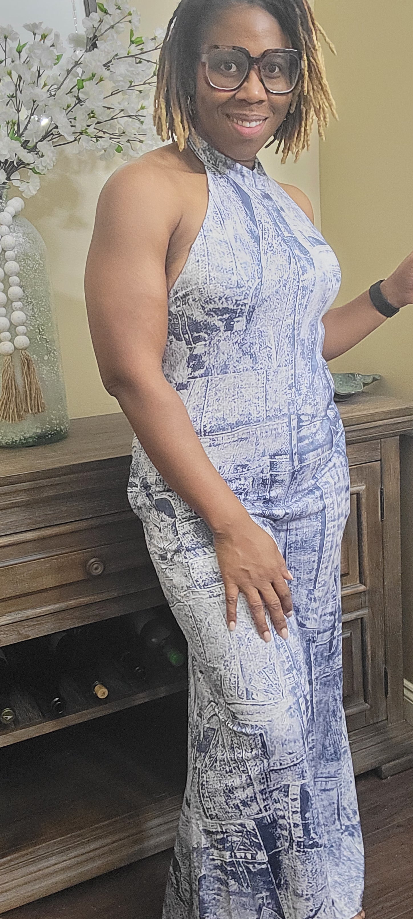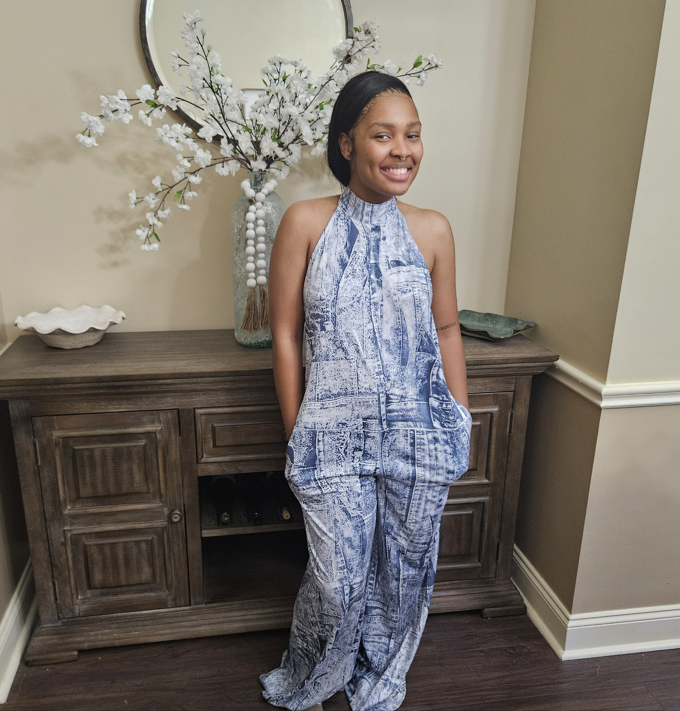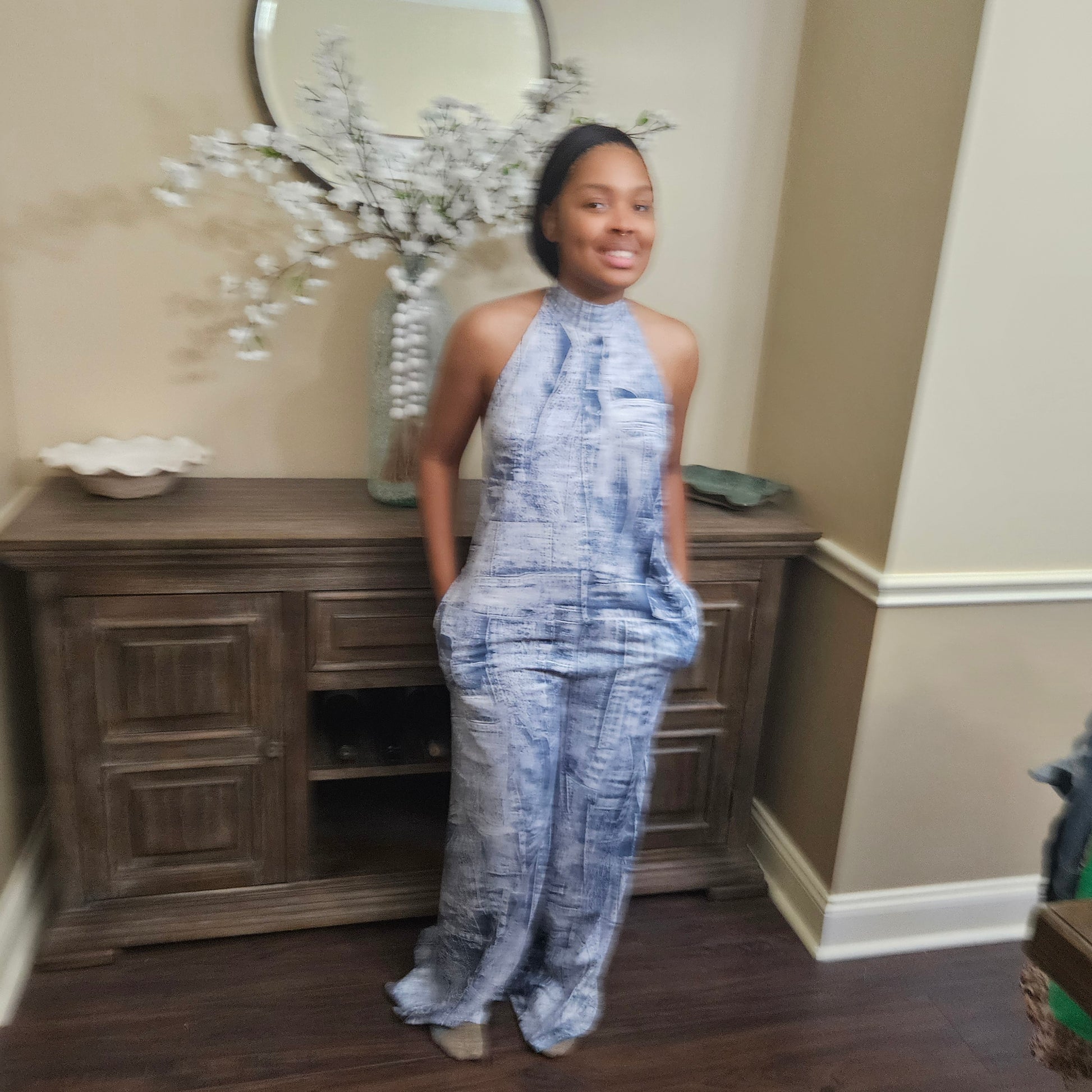 This knit jumpsuit features a loose fit and practical pockets, making it a versatile and functional addition to your wardrobe.