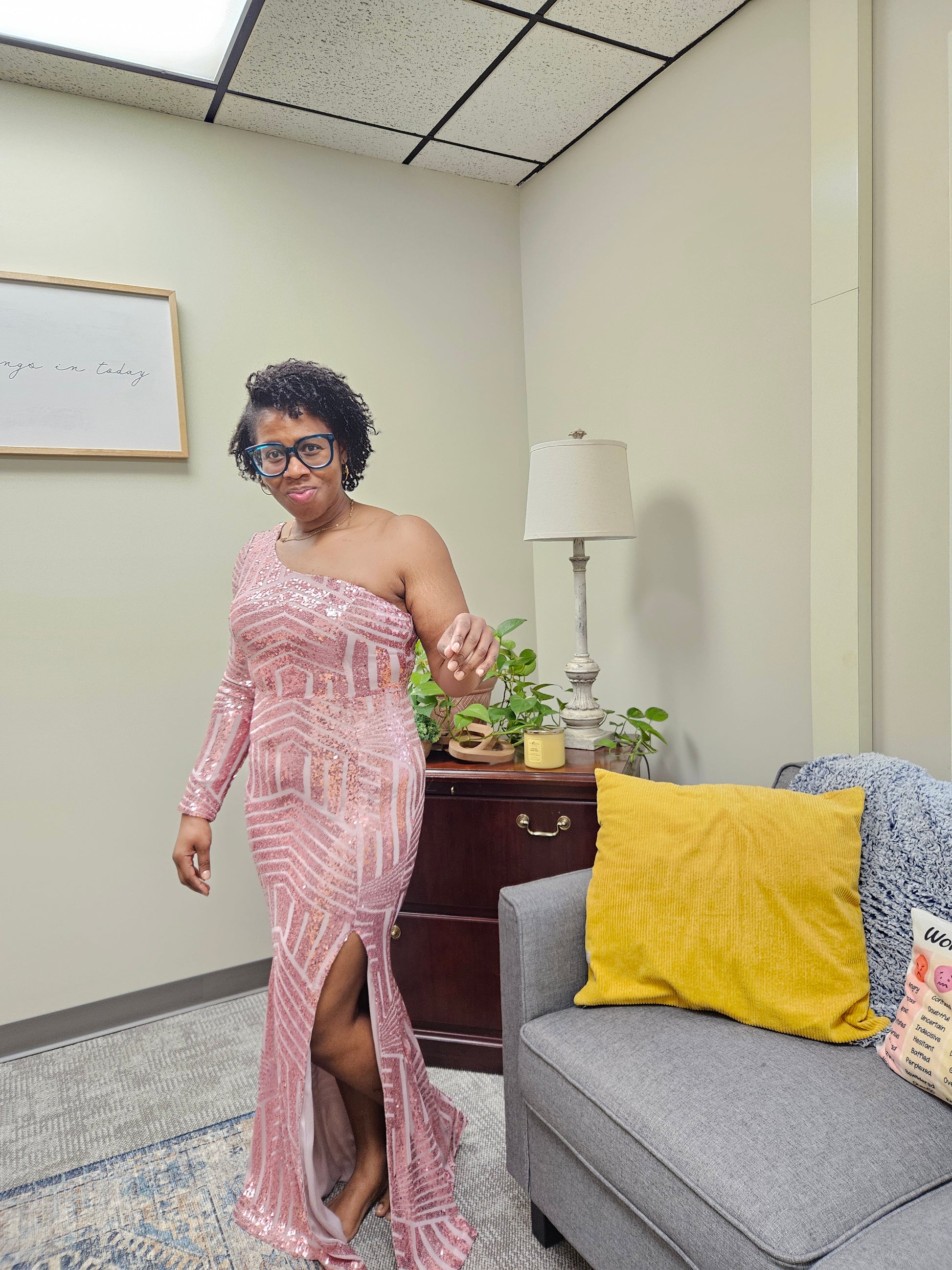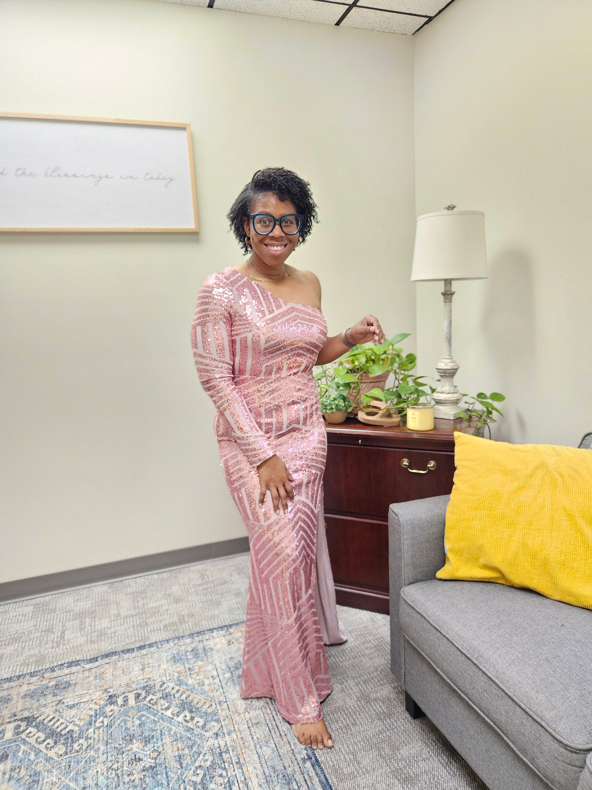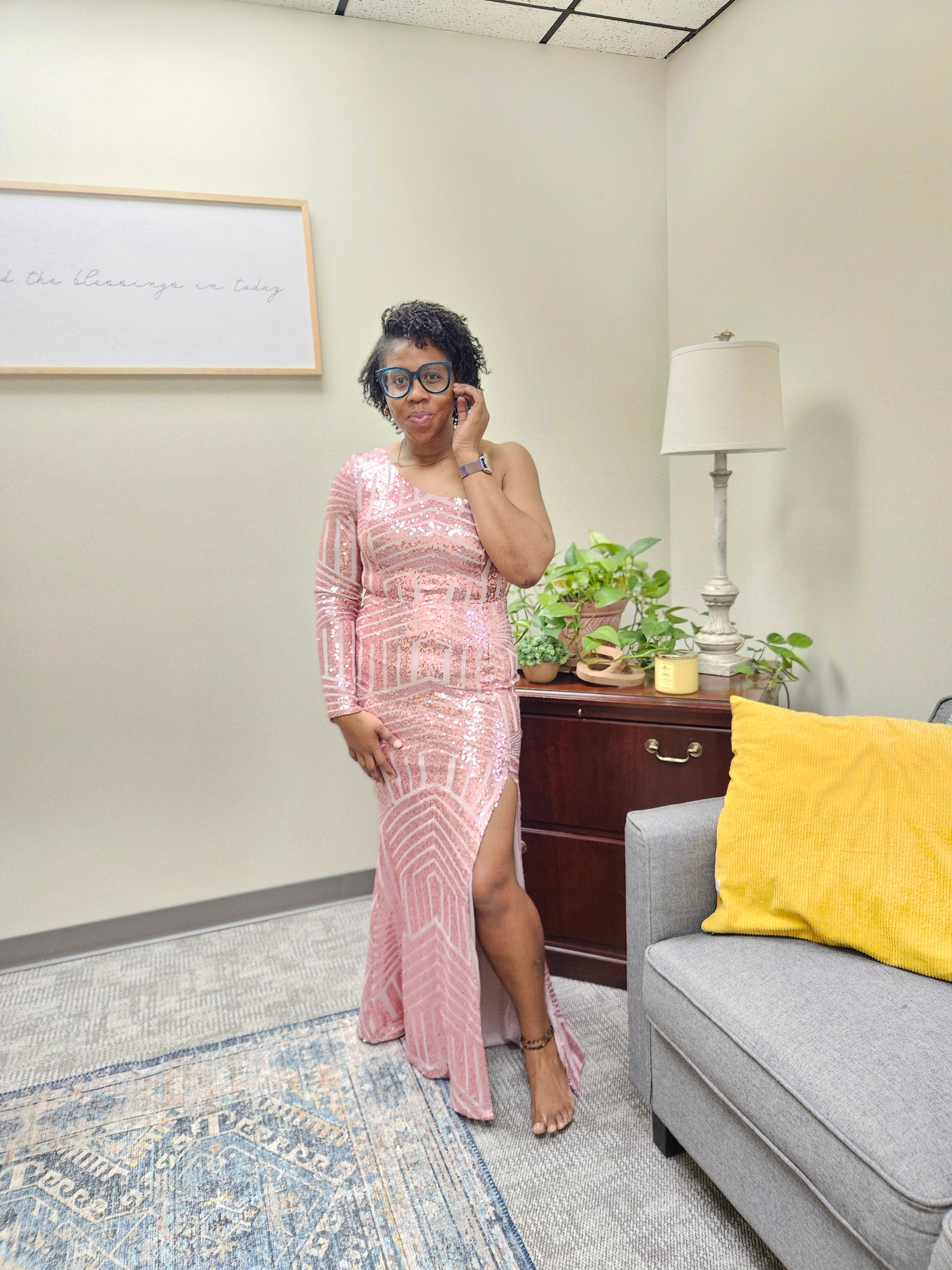 Elevate your style with a bold, single-shoulder long-sleeved gown adorned with shimmering sequins. This fearless dress features a concealed back zipper and a slit to add an element of intrigue.