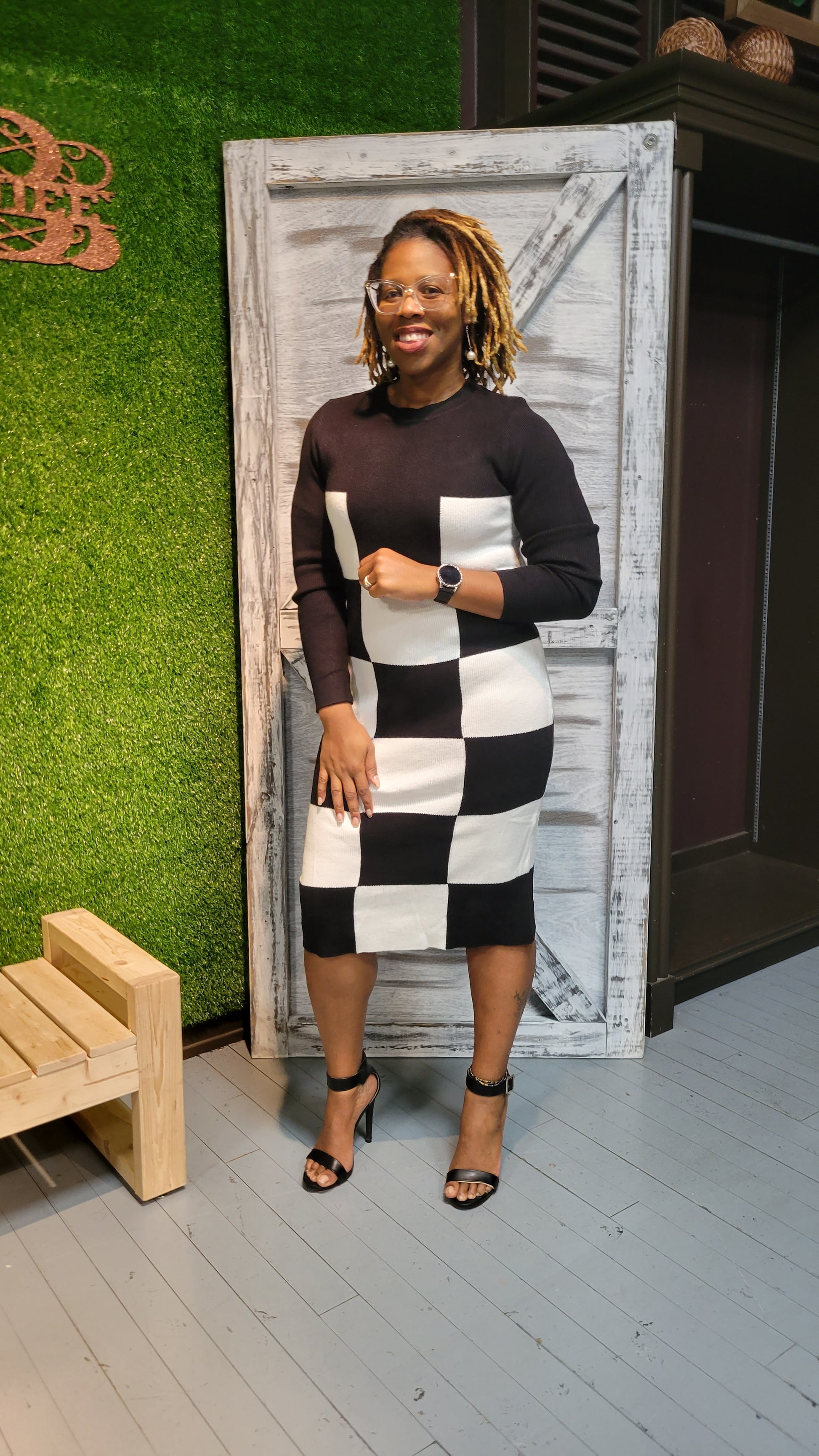 This crew neck long sleeve midi sweater dress showcases a ribbed stretch neckline for an enhanced fit.