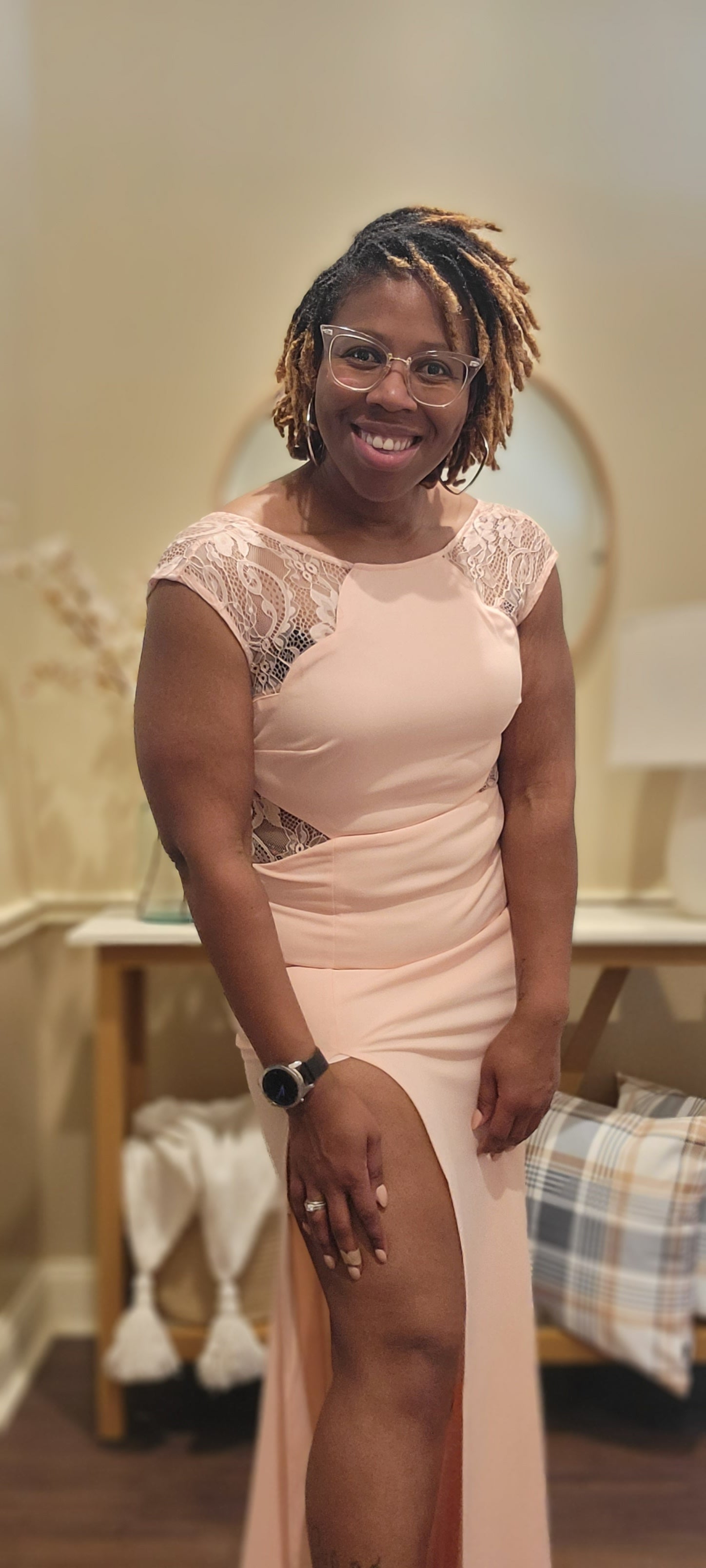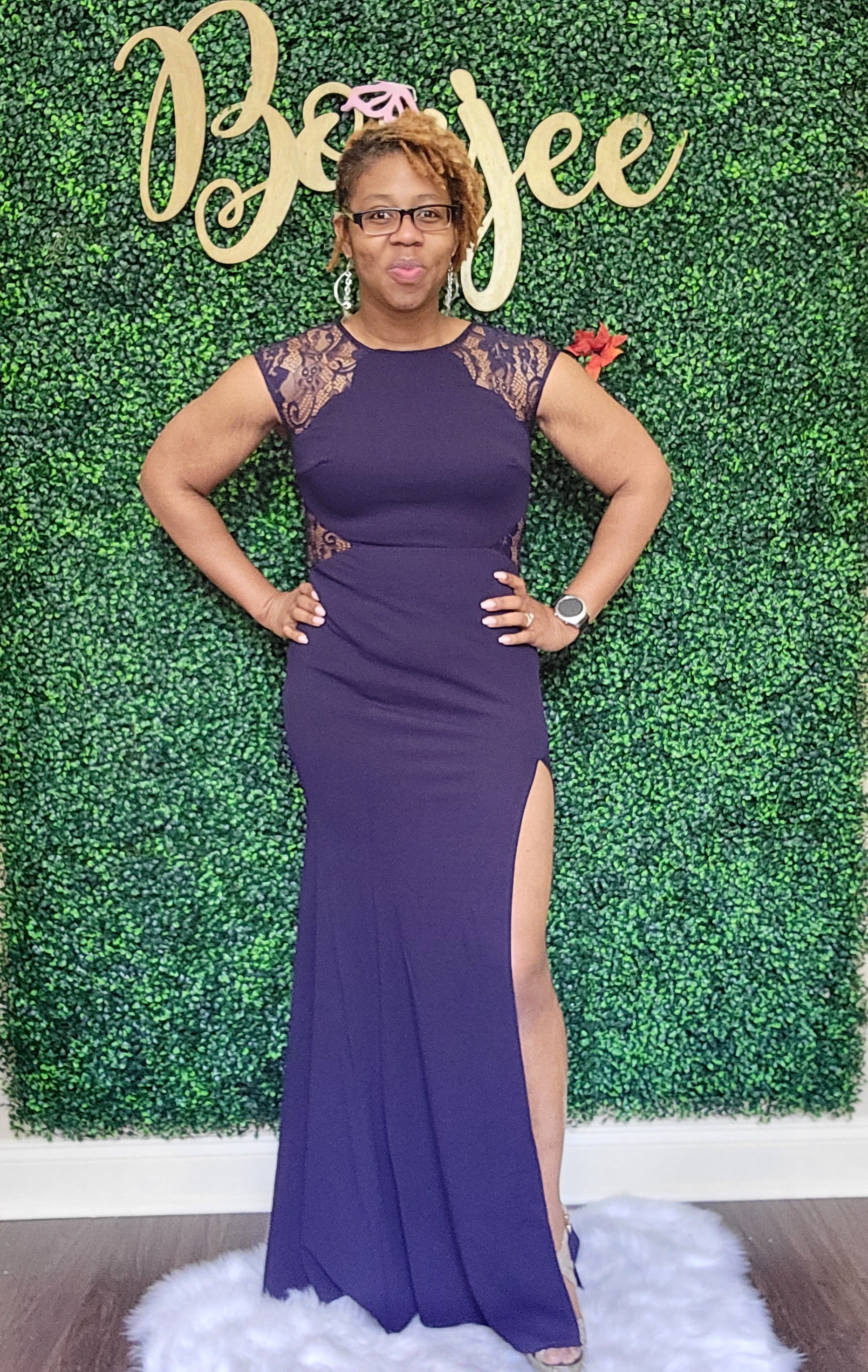 this beautiful ladies scallop maxi bodycon dress with lace cutout and side slit is elegant for whatever the occasion title is.