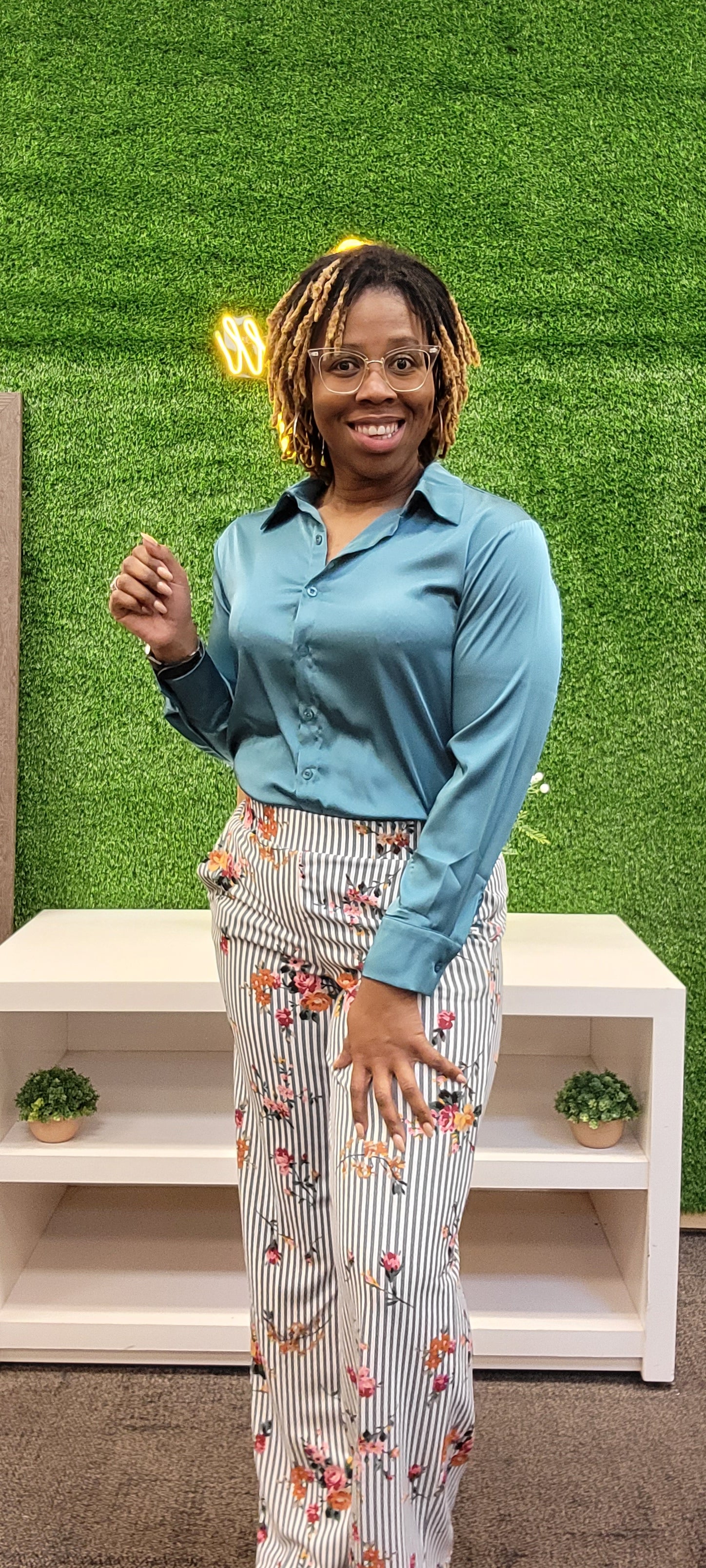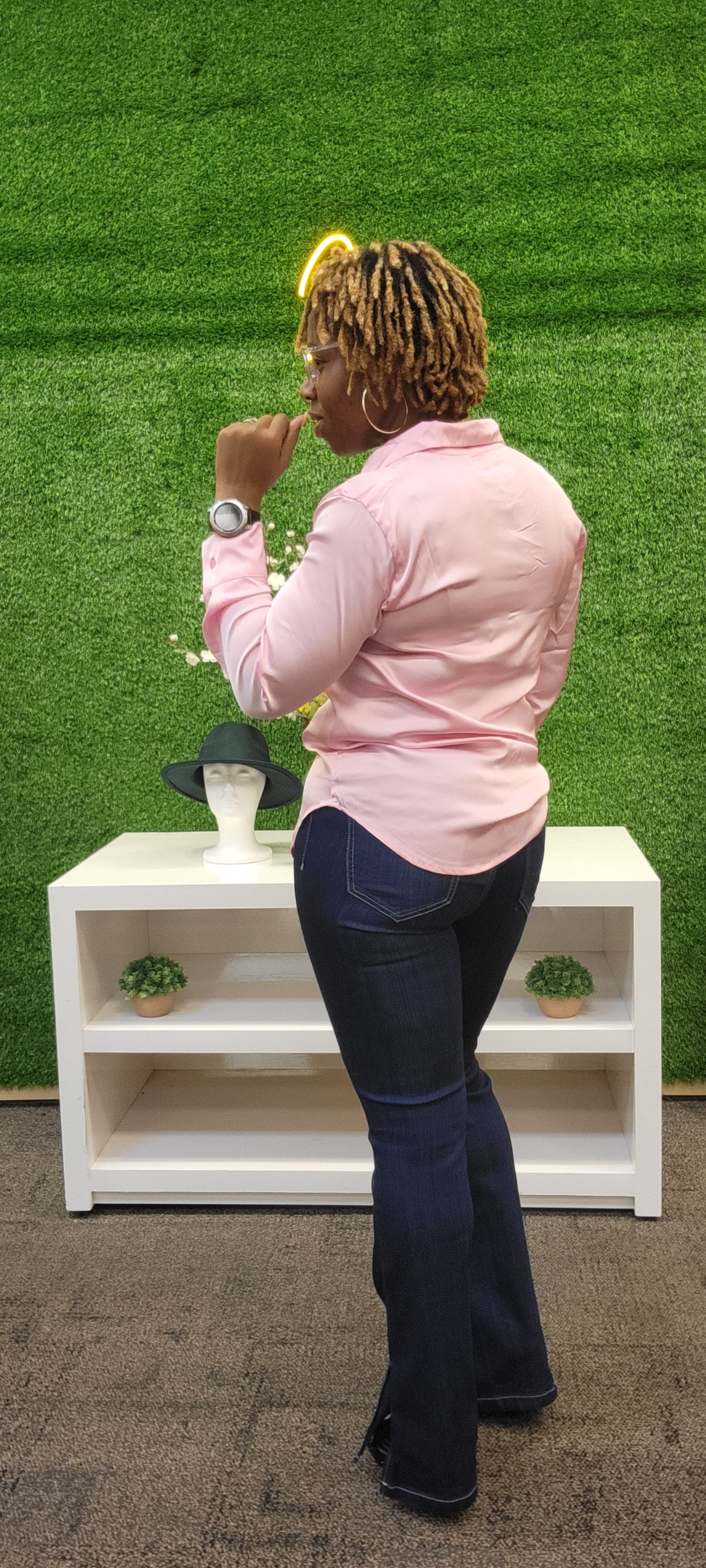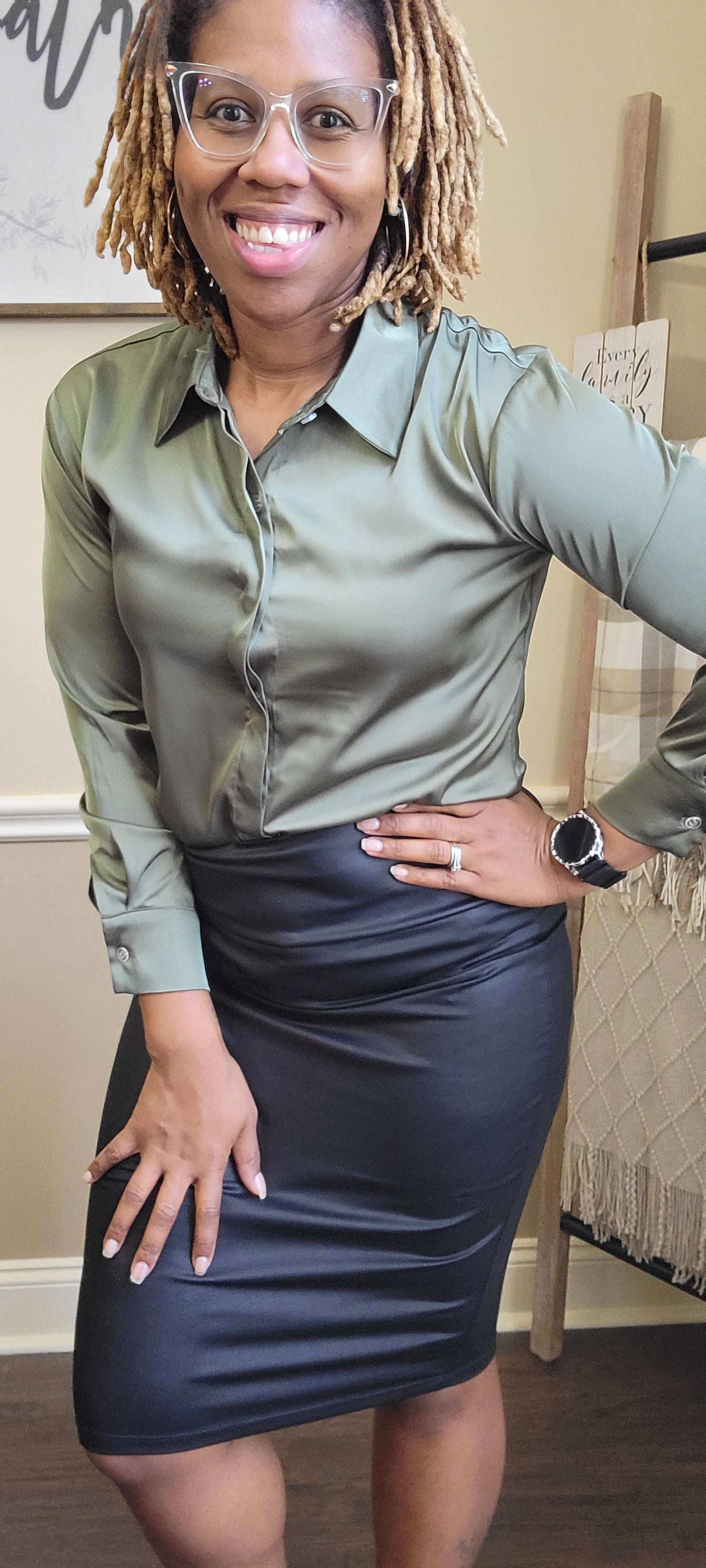 Crafted from opulent satin charmeuse, this button down blouse exudes an elegant appearance. Charmeuse, a lavish fabric with a lustrous face and matte reverse, is typically woven using silk.