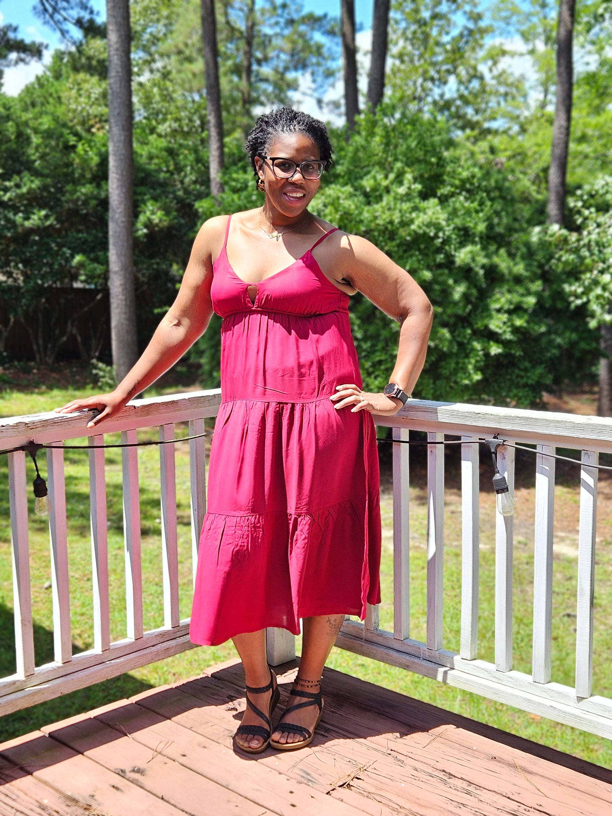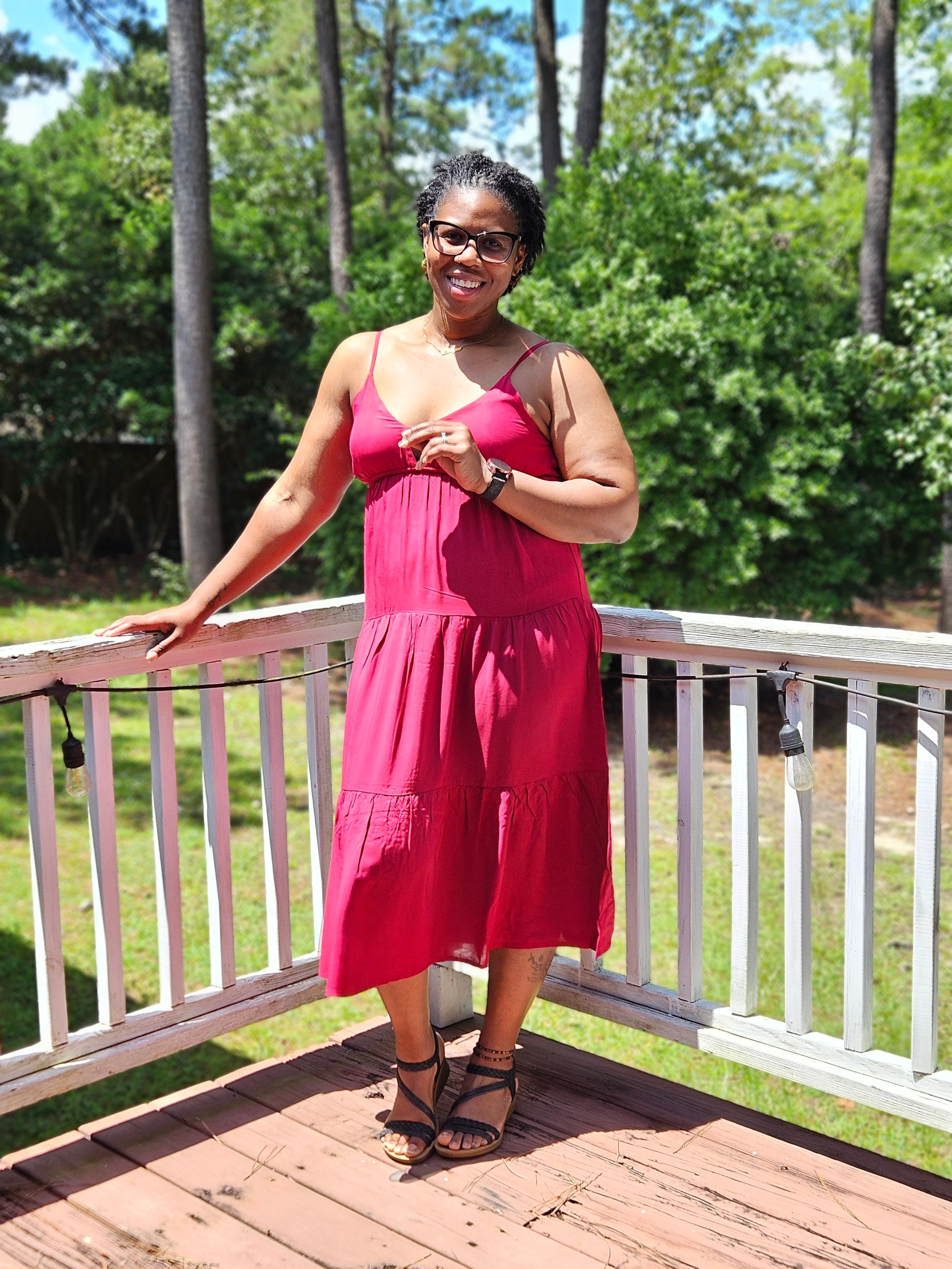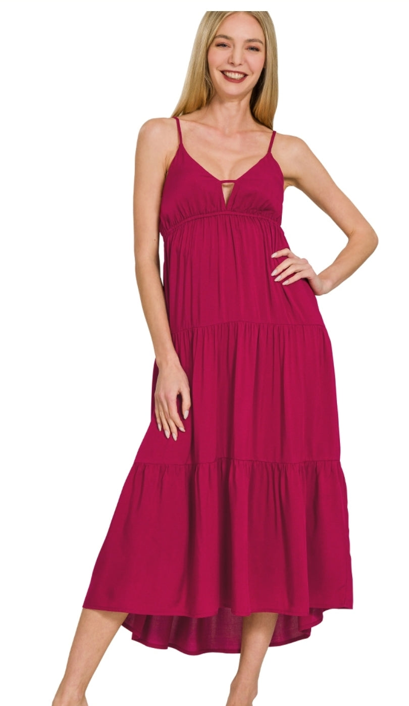 This midi cami dress features a woven fabric and a flattering sweetheart neckline, perfect for making a stylish statement.
