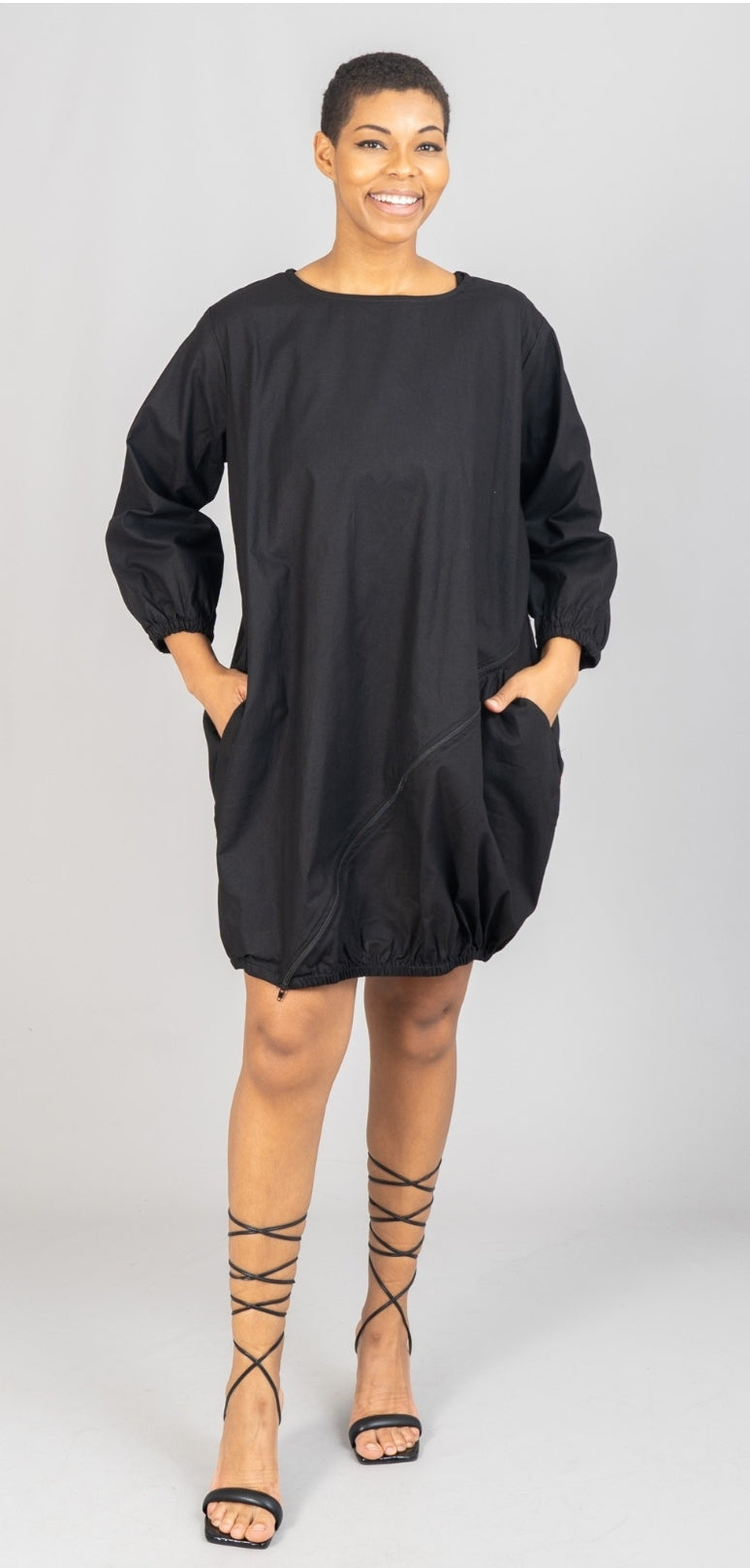 Sport a comical, professional, and stylish look with this asymmetrical zipper accented tunic, featuring elastic details on the bottom and cuffs. The backside is plain and the tunic measures 37" in length with a 26" bust. It is machine washable and available in one size that fits up to 2X.