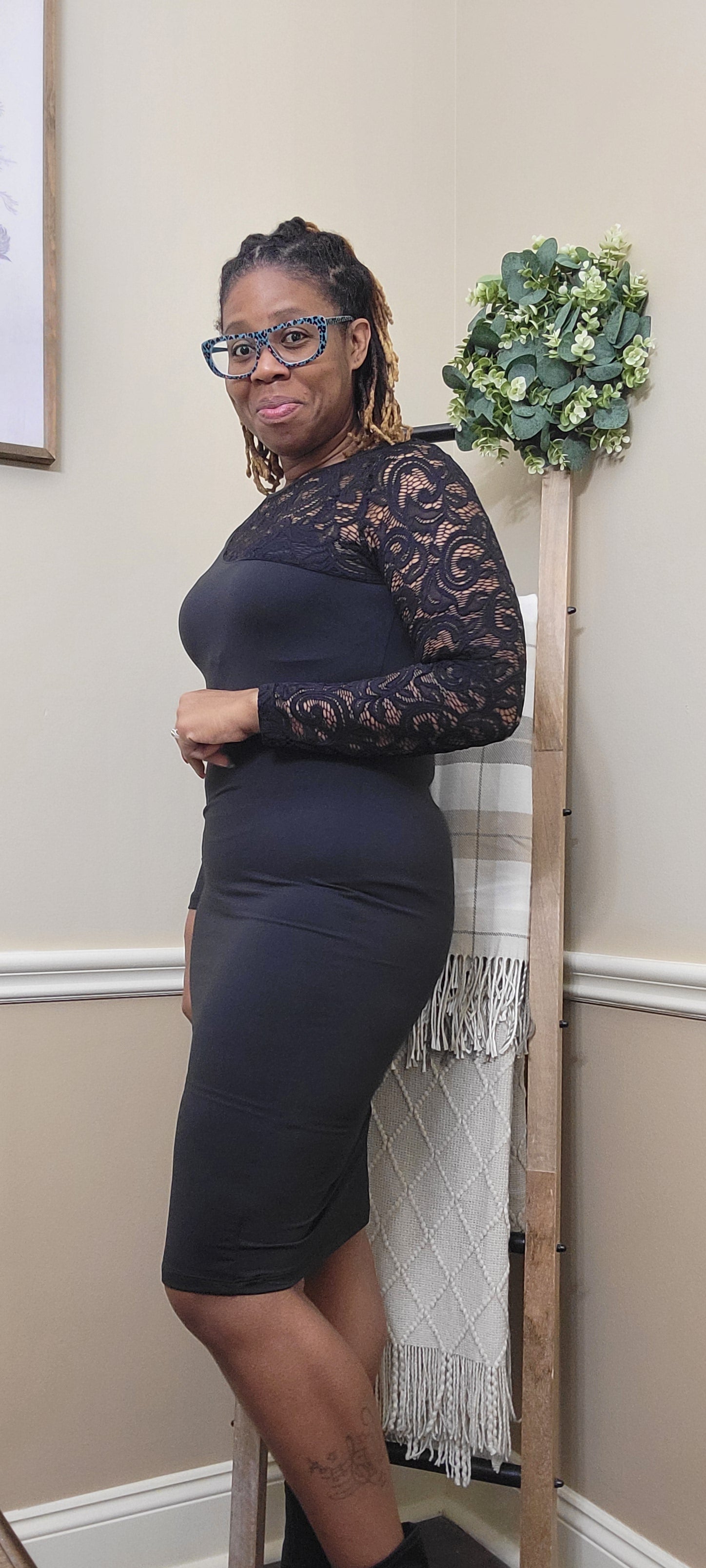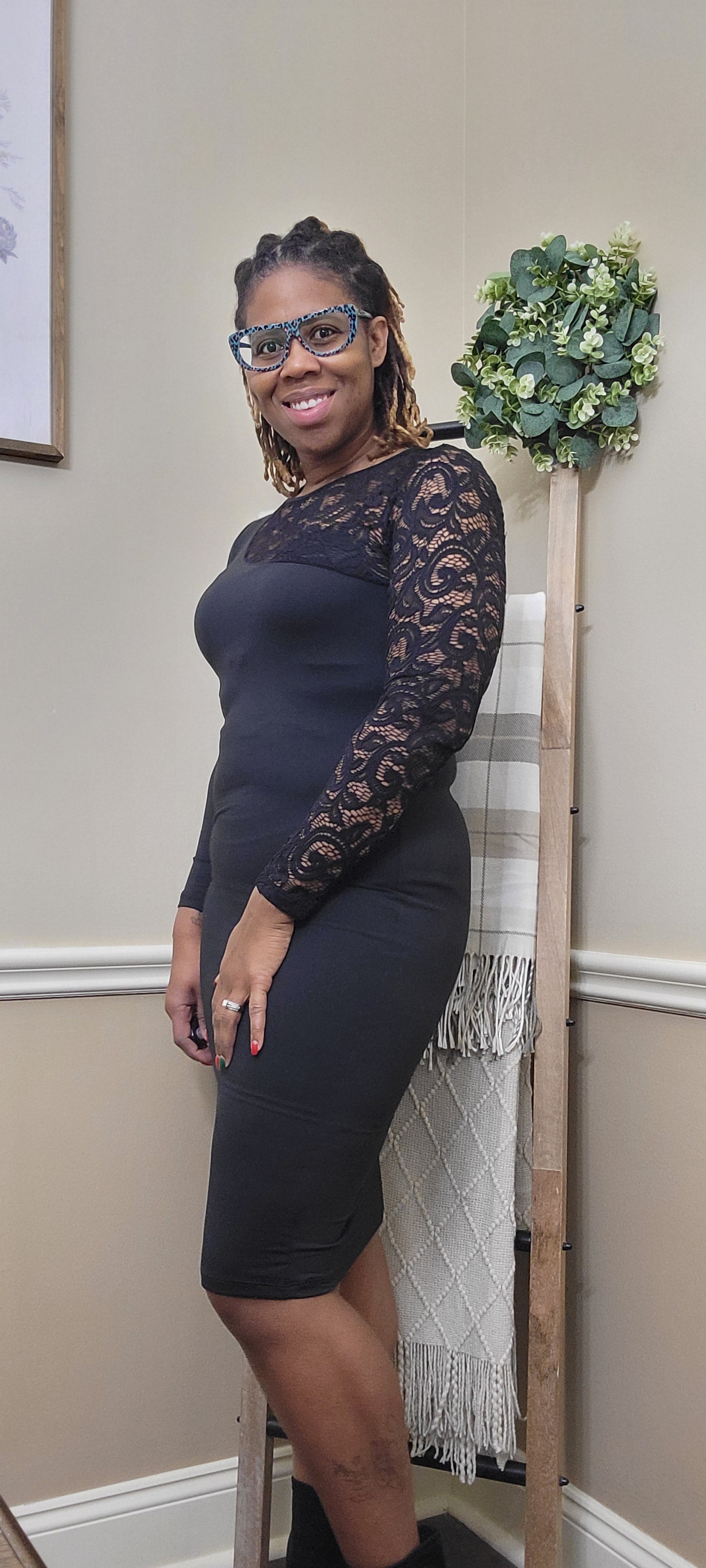 Elevate your style with our midi bodycon dress featuring printed lace sleeves and a scooped neckline, contrasting with the smooth texture of peach skin fabric. The fitted bodice exudes glamour and elegance.