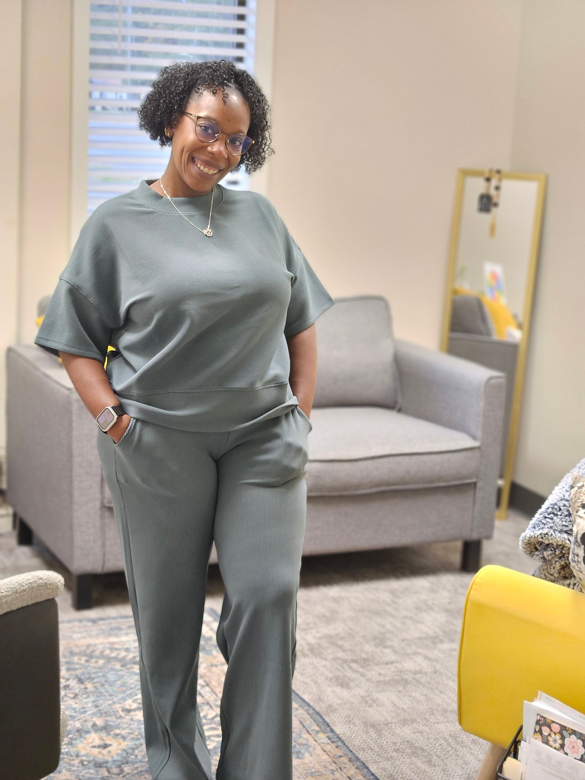 This ribbed round neck tee and pants set offers a perfect blend of comfort and style for your everyday wardrobe. Crafted with soft, breathable fabric, the ribbed texture adds subtle detail that enhances the outfit’s casual yet chic look. The round neck tee provides a flattering fit while the matching pants ensure ease of movement and a relaxed silhouette. Ideal for lounging at home or running errands, this coordinated set keeps you looking effortlessly put-together. Elevate your basics with this versatile set designed to keep you comfortable without sacrificing style.