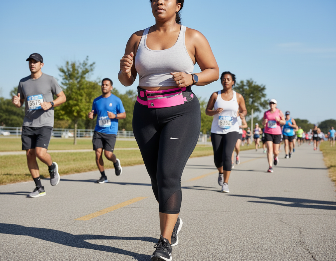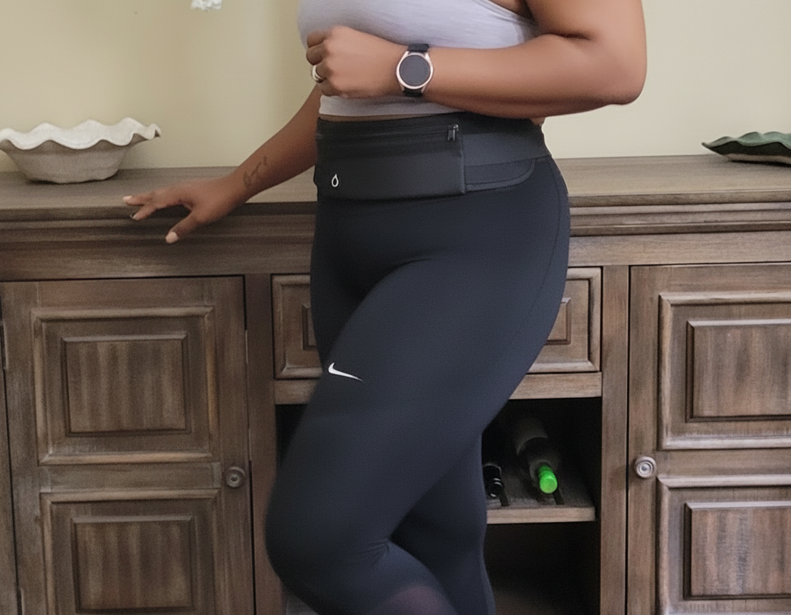 The Trek Pak running belt is designed for both men and women, featuring two pockets for storing essentials such as a phone, keys, and money. Its water-resistant material ensures safety for your belongings while the reflective phone holder can accommodate most cell phones without bouncing during your run.
